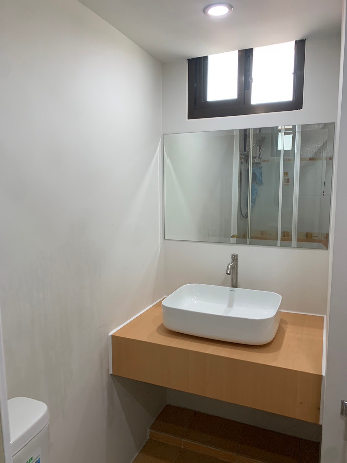 หลังจากรีโนเวทเสร็จ ห้องน้ำเปลี่ยนจากพื้นที่เดิมที่ดูทึบและทรุดโทรม กลายเป็นห้องน้ำโทนเรียบสบายตา ใช้งานง่าย และดูใหม่ทั้งหมดตั้งแต่พื้นจรดฝ้า แสงสว่างที่พอเหมาะช่วยให้รู้สึกโปร่งขึ้น แม้จะเป็นพื้นที่ขนาดเล็กก็ไม่อึดอัดเหมือนก่อน