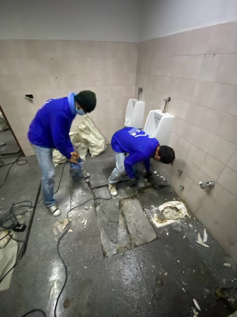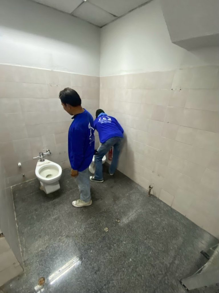 ก่อนเริ่มงาน ห้องน้ำส่วนกลางคอนโดยังคงสภาพเก่า สุขภัณฑ์และผนังมีรอยชำรุด คราบสกปรกสะสมหลายจุด และมุมบางมุมทำความสะอาดได้ยาก ระบบน้ำและท่อระบายน้ำยังไม่สมบูรณ์ ทำให้เกิดน้ำขังบางจุด ส่งผลต่อความสะดวกและความปลอดภัยของผู้พักอาศัย